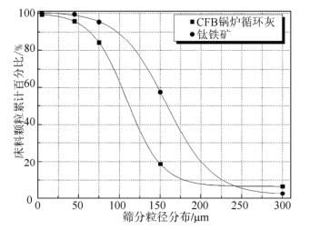 本次試驗(yàn)分別采用鈦鐵礦和 CFB 鍋爐循環(huán)灰為床料,采用