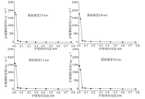 2. 2 截面速度對爐膛顆粒濃度的影響
