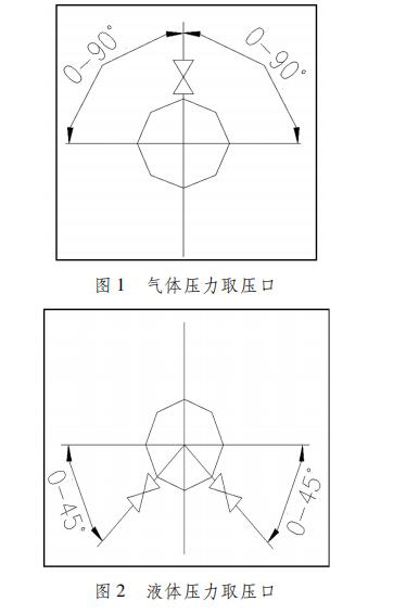 取壓口方向與管道水平中心線方向的夾角為 5° ~ 10°,把氣化后的氣體封住在導(dǎo)壓管里,又盡量避免導(dǎo)壓管里的液柱變化太大,影響測(cè)量準(zhǔn)確性。