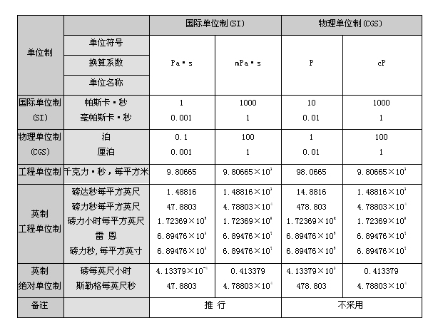 1厘泊(cP)=10-3帕•秒(Pa•s) |