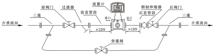 2、流量計安裝前,特別是新管道安裝或維修管道時,應先清洗管道,清除所有的爐渣、鐵銹等管道雜物。