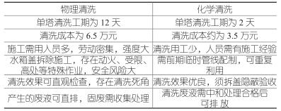 與物理清洗比較,對單法蘭液位計鈦管的除垢化學(xué)清洗有著比較突出的優(yōu)勢與特性。表 5 為高壓水清洗與化學(xué)清洗經(jīng)濟(jì)效益與社會效益的比較。