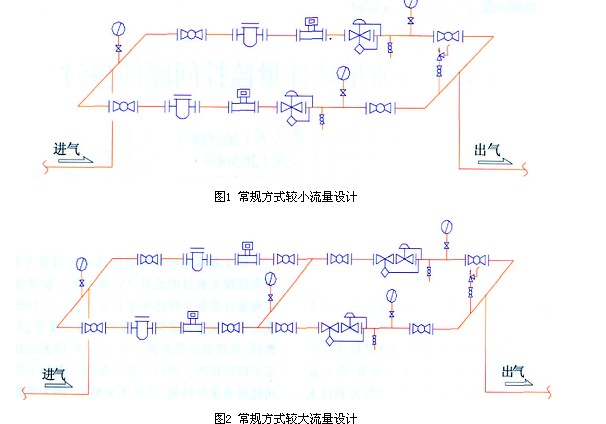 圖1示出了常規(guī)小流量渦街流量計的設(shè)置方案,圖2示出了常規(guī)大流量渦街流量計的設(shè)置方案。 流量計是基于理想流量計設(shè)計的。 一旦流量計出現(xiàn)超精度偏差和故障,就會出現(xiàn)計量損失,并且這是無法彌補(bǔ)的。 盡管該設(shè)計為雙通道一開一待機(jī),但無法在工作狀態(tài)下進(jìn)行測試,因此無法確定新安裝的儀器以及一段時間內(nèi)工作的儀器的實際性能和狀況。 因為只要電表旋轉(zhuǎn),就很難用肉眼看到問題,除非電表停止或不顯示數(shù)字。 如果儀表停止運(yùn)行或不顯示數(shù)字,管理人員沒有觀察到或人員不在現(xiàn)場且氣體仍在流動,則不會出現(xiàn)計量現(xiàn)象(流量計停止旋轉(zhuǎn)而不會影響氣體流量) )。