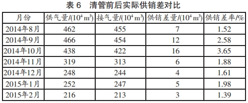 A子站的渦輪流量計(jì)距離壓縮站(由往復(fù)式壓縮機(jī)加壓)不到7公里,該壓縮站非??拷嫌危⑶以撟诱镜募夹g(shù)布局緊湊。根據(jù)現(xiàn)場測量,流量計(jì)的上游直管段的長度約為DN6(DN是渦輪流量計(jì)的口徑,mm),下游直管段的長度約為4DN。此外,沿7公里管道的崎terrain地形,加上大量的煤層氣(CBM)大量水,很容易在低洼地區(qū)形成液體積聚,并且液體積聚還會(huì)引起脈動(dòng)流。 2014年8月至2014年10月,當(dāng)下游公司發(fā)現(xiàn)積極的供銷缺口持續(xù)增加時(shí),它對變電站A和變電站B的渦輪流量計(jì)進(jìn)行了校準(zhǔn),但校準(zhǔn)結(jié)果全部合格。隨后,下游公司于2014年11月5日至7日對A到B輸電站的管道進(jìn)行了清管作業(yè),共清除了23噸污水中的雜質(zhì)。清管完成后,正供與銷之間的差異顯著減小。表6顯示了清管前后供求之間的實(shí)際差異。