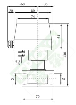 機(jī)械式流量開關(guān)。內(nèi)置彈簧支撐的擋片,當(dāng)流量達(dá)到預(yù)制值時(shí),機(jī)械結(jié)構(gòu)觸發(fā)微動(dòng)觸發(fā)開關(guān)。